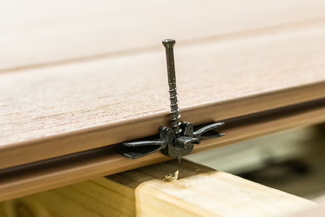 Os Clipes de Deck Escondidos CAMO são a melhor maneira de instalar o deck ranhurado. Por que? Porque você pode instalar as tábuas na metade do tempo.